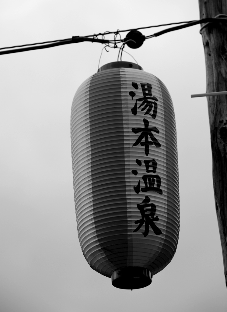 温泉街を歩く浴衣姿の風景。似合いますよね。モノクロの方が時代を感じることができます。