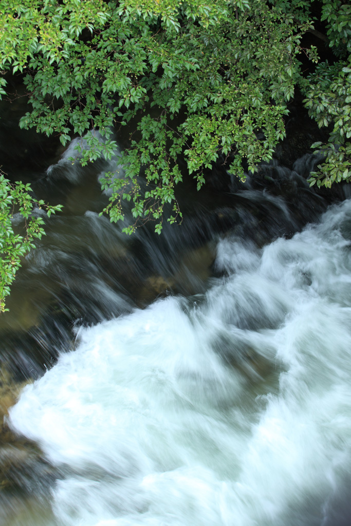 マニュアルモードで撮影をしてみました。手前のかぶさっている木々に深めにピントをあわせておいて、奥の川をぼかし気味に流れを作っている2段構えの写真に仕上げてみました。一枚の写真で2つのことを表現している写真です。