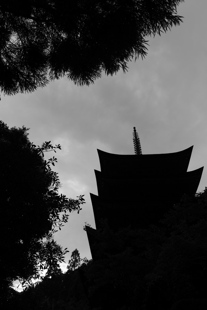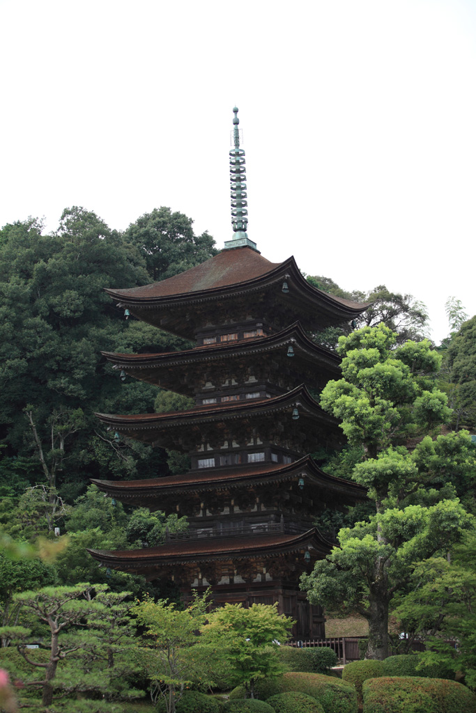 瑠璃光寺ですね。非常に趣のある塔です。曹洞宗の寺院のもので、香山公園の中にあります。非常に重厚ですので、それだけではなく、周りの木々の風景も入れ込んでみました。