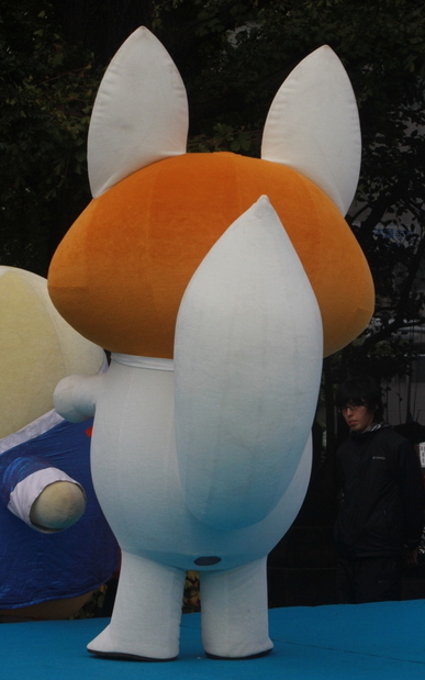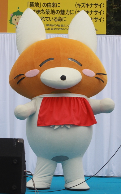 | 伏見稲荷の使いである白狐がモチーフ。 顔は三角おあげが特徴の伏見稲荷寿司をかたどっている。 |