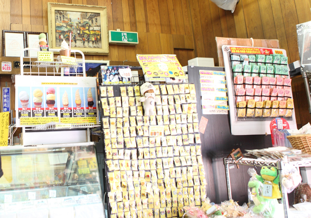 店内はおみやげ物も販売していましたが、小さなお店です。店内にベンチがありイートインもすることができます。