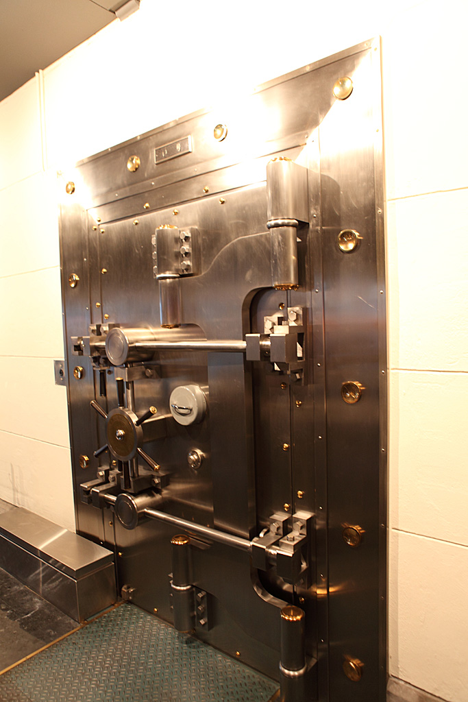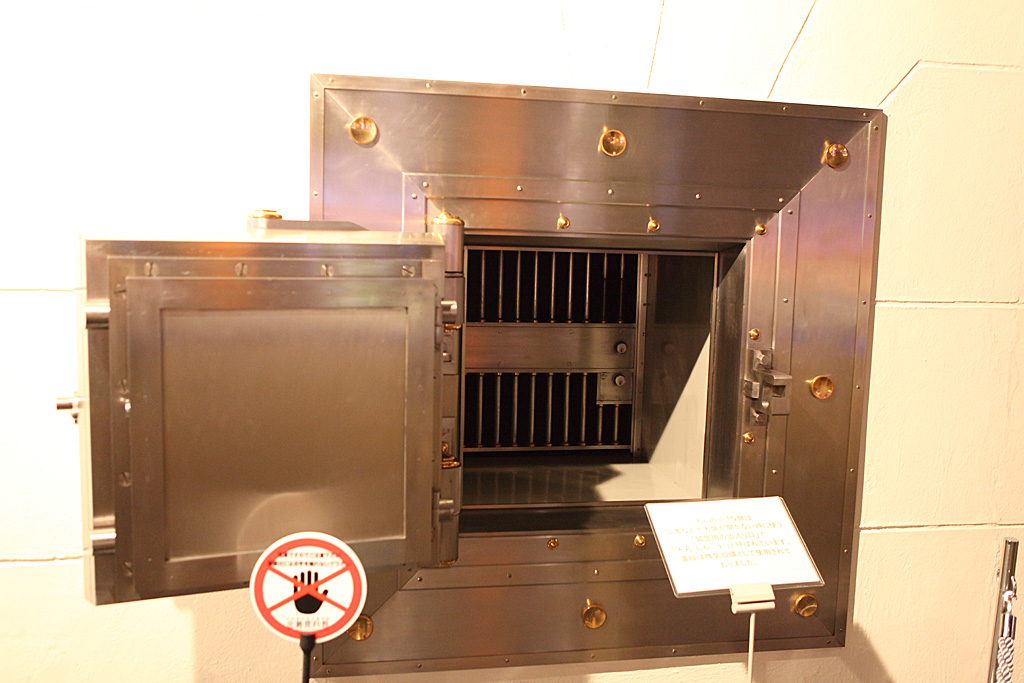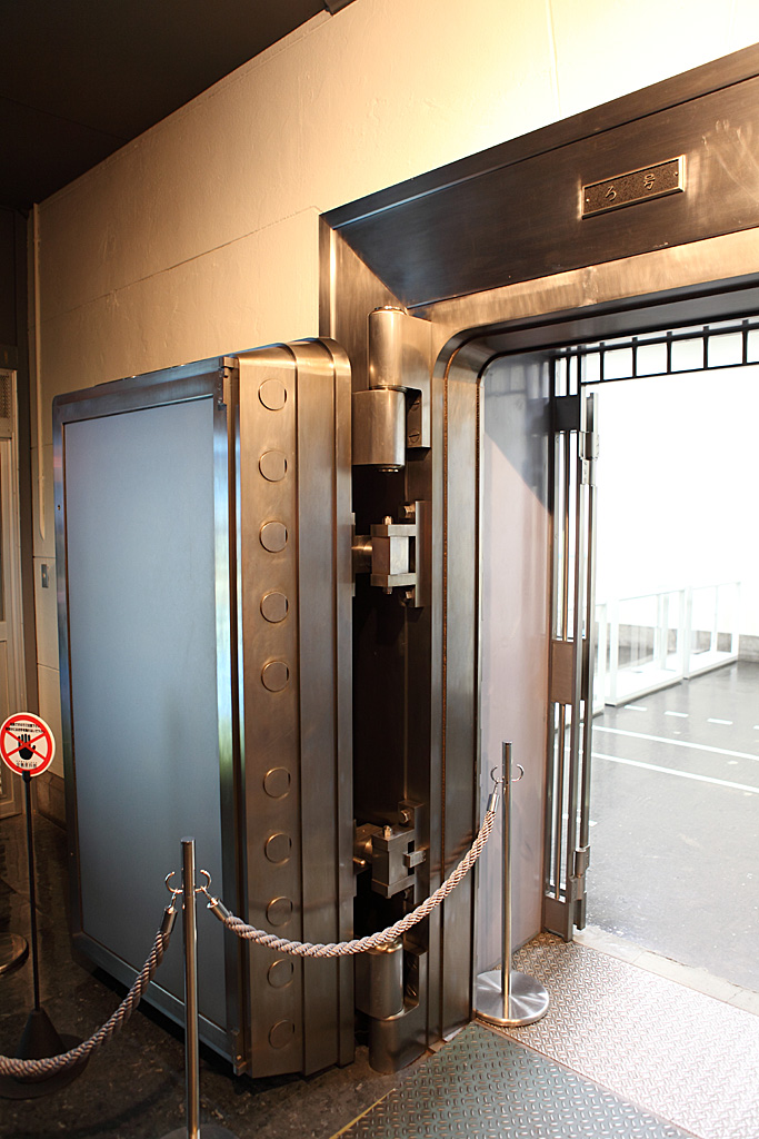 前回紹介した、金庫の入り口です。これは半端じゃありませんね。現在ではもっと高度なロックシステムになっているそうです。金属の塊といった感じがします。
