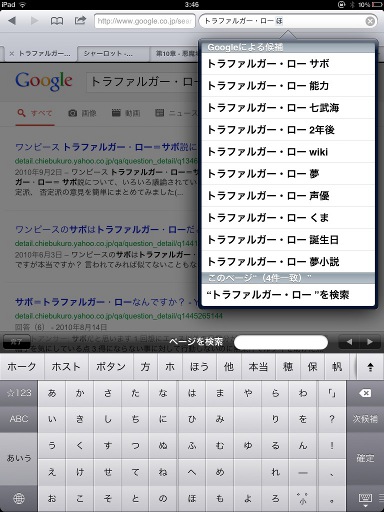 これはあるサイト(後術)から転載した画像です。Googleでの検索キーワードに『トラファルガー・ローサボ』と書いているのがみなさん分かりますか?