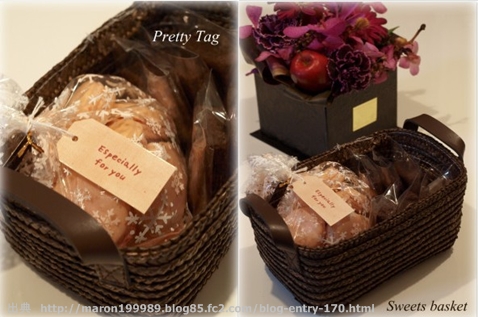 | (1)やわらかいカゴをうまく使ったラッピング♪ ナチュラルな素材感があったかみがあって素敵です☆ カフェの焼き菓子コーナーみたい! | |