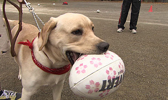 熊谷で有名なスポーツがラグビー!そこで小学生チームを訪問し、まさはる君が対決することに!ボール好きのまさはる君、不規則にバウンドするラグビーボールでも勝利できるのか!?