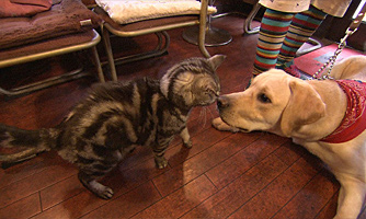 隅田川を散策中にペットがいる喫茶店があるとの情報をキャッチ。訪ねるとここにも看板猫が!なんとここのニャンコ、ワンちゃんが居ても平気でまさはる君が近づいて来た!まさはる君、遂にお友達ニャンコ作りに成功!?