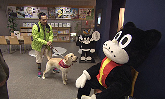 まず見つけたのは大きなのらくろの作品やグッズ等を展示している「のらくろ館」。特別に館内に入れてもらったまさはる君を待ち受けていたのは、大きなのらくろのぬいぐるみ!それを見たまさはる君の反応は!?