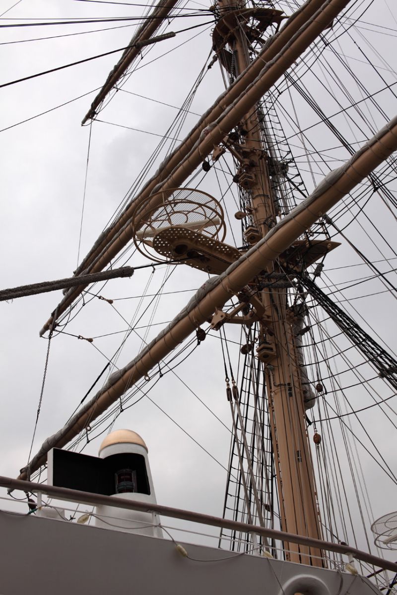 4本マストのうち前から2本目です。この段階では帆は張っていませんが、このあと帆を張る訓練が行われていきます。