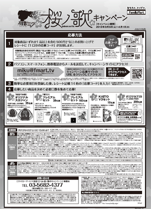 3月5日〜4月1日には「”初音千本桜” オリジナルスカジャン」などの豪華賞品が当たる「初音ミク de 桜ノ歌のキャンペーン」が実施されるそうです。