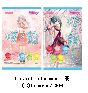 桜ノ飴は、人気楽曲「桜ノ雨」をモチーフにした桜型キャンディ。ボーカロイドシリーズに登場するキャラクターをイメージした5種類のアソート。
