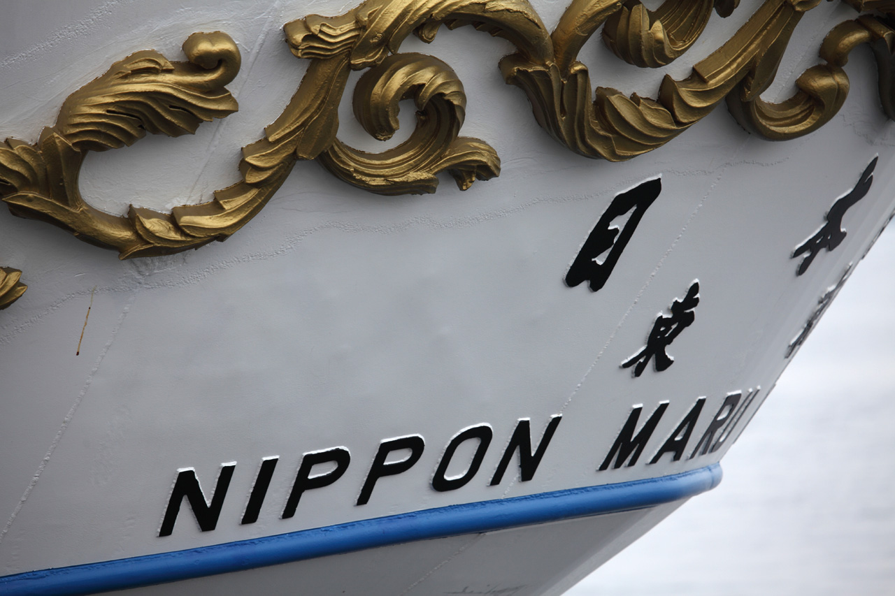 今度は日本丸の船尾です。基本デザインは海王丸と同じですが、ちょっとデザインがことなります。