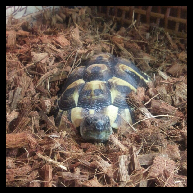 朝起きて、ものすご〜くゆっくり モソモソと床材から出てきたところ。爆爆爆