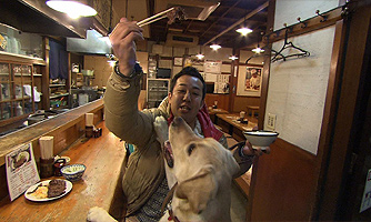 その後遊覧船で松島へ。ここでは初代旅犬まさお君が尋ねたお土産店を訪問。当時の看板犬が元気に迎えてくれました。そして店内にはまさお君が訪問したときに写した少し汚れた記念写真が。実はお店が津波の被害に遭い、流されたものを探して再び飾ってくれたのだとか。それを聞いた松本君は感慨深げ。
