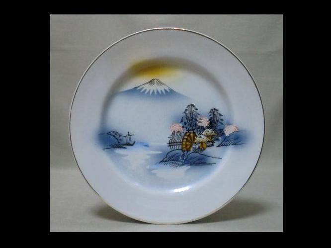 大正期(推定) 輸出用 ハンドペイント 冨士・山水の図