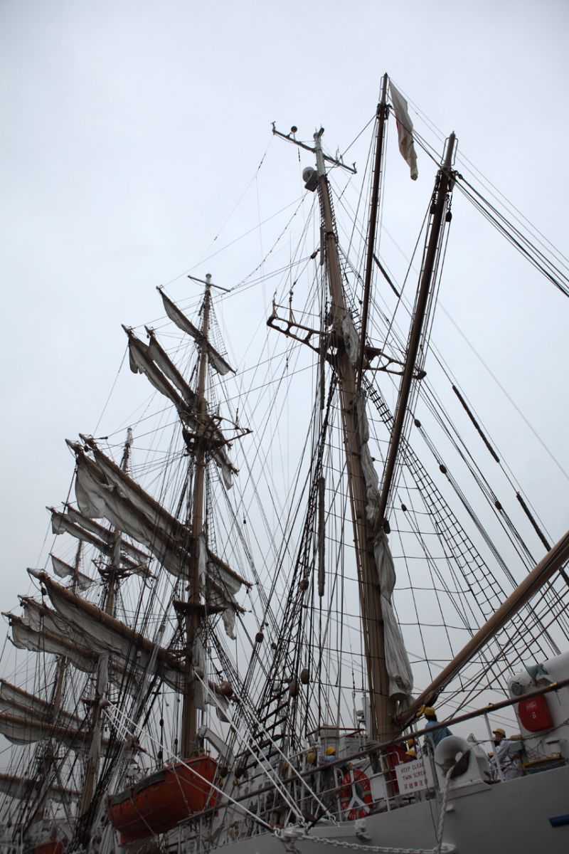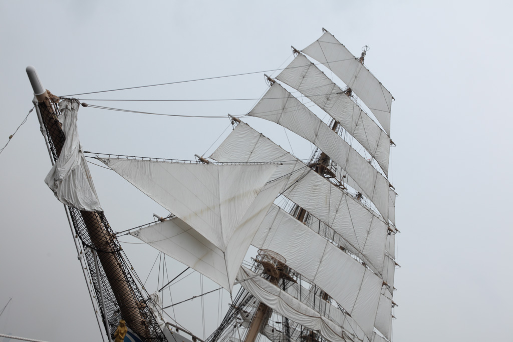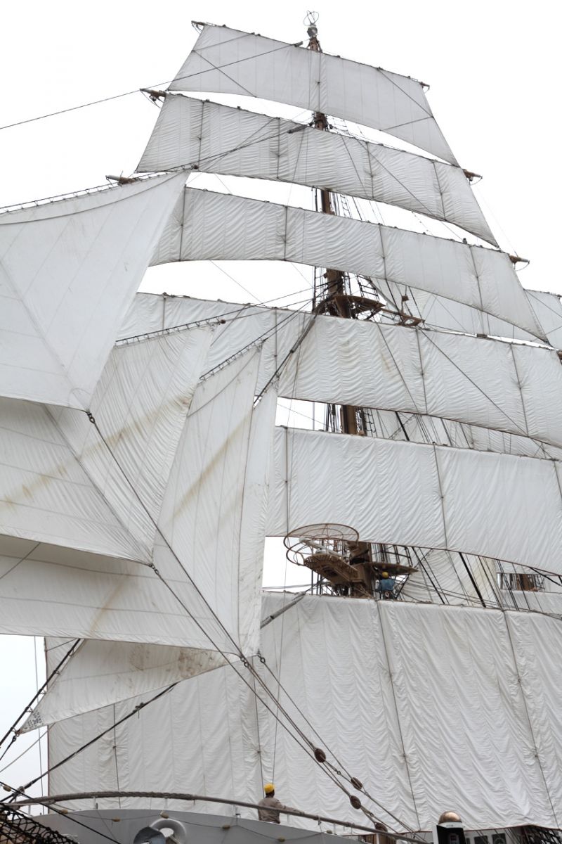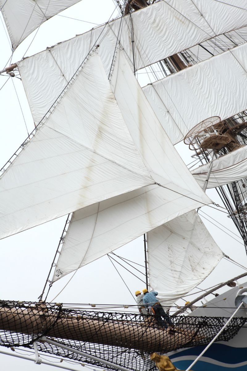 いよいよ世界で一番美しいとされる帆船に帆がはられました。世界でも珍しい4本マストはもっとも美しい船にふさわしい称号です。