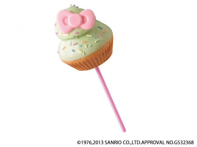 ふんわりソフトなカップケーキ生地に、青りんごホイップを絞り、青りんご風味のチョコでコーティングし、カラーシュガーとハローキティのリボンをトッピング