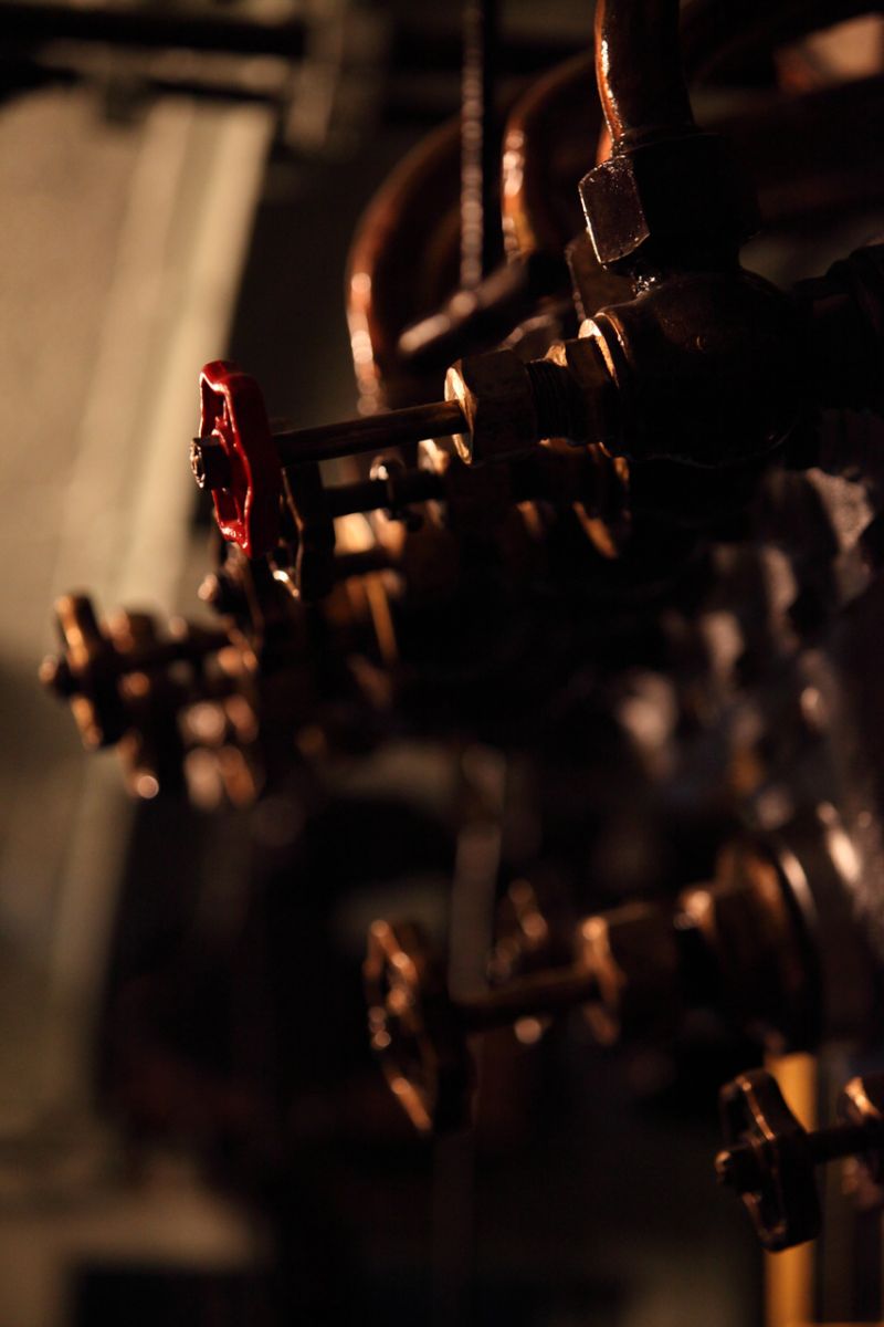 赤い開放弁だけにピントを入れて、他はちょっと物悲しさを出してみました。現役を引退しこうして博物館にいることが、車両にとって名誉でもあり、さびしいのかもしれません。