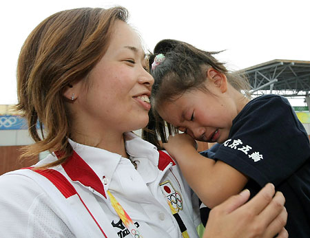 「ごめんね。でもママも頑張ったよね」と娘を抱き寄せた中山選手。