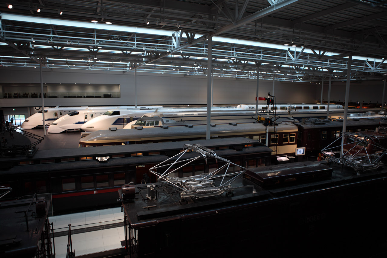 施設内とはいえ、どこかの鉄道基地のようです。2Fから見下ろすとパンダグラフがよく見ることができ、通常電車を見る角度とは異なる世界を見ることができます。