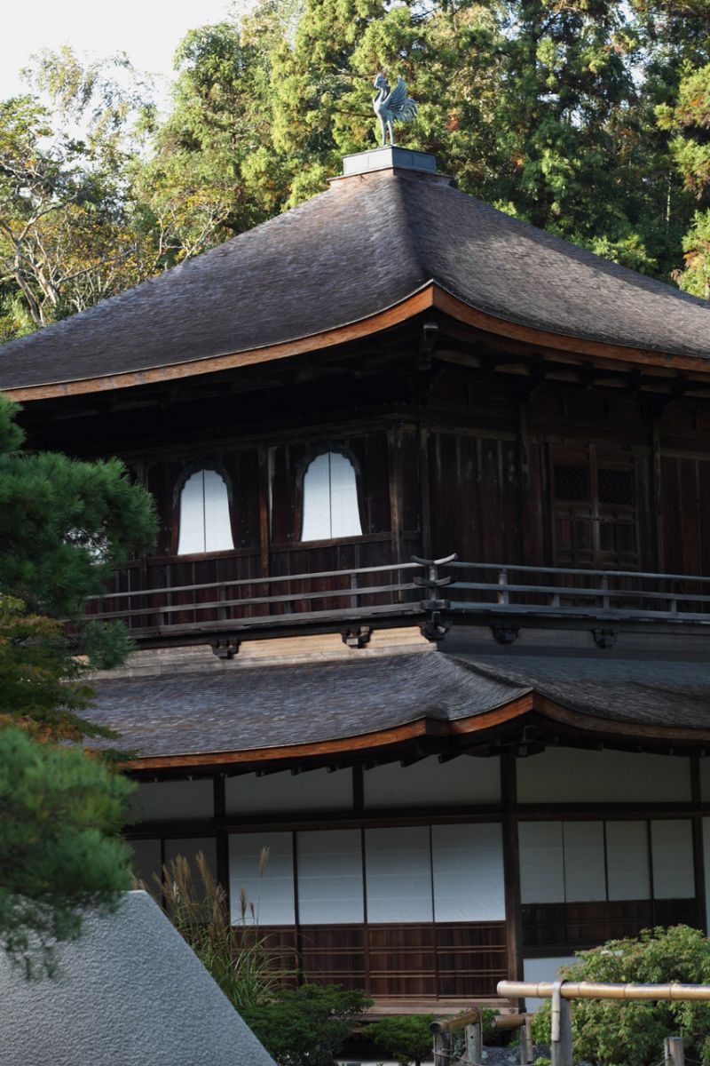 銀閣は、足利義政の山荘東山殿に造営された観音殿のことで、義政の祖父・3代将軍義満が建てた金閣と対比されて用いられる通称である。金閣および、飛雲閣(西本願寺境内)とあわせて京の三閣と呼ばれる。1489年(延徳元年)に上棟されたことがわかっており、同年をさほど隔てない頃に完成したと思われる。重層、宝形造で、平面は長方形で正面8.2メートル、奥行7.0メートル。初層の「心空殿」は住宅風、上層の「潮音閣」は方3間(柱間の数が正面・側面とも3つ)の禅宗様(唐様)の仏堂で観音が安置されている。書院造につながる和風の住宅風意匠が取り込まれており、東山文化の代表的建築物である。金閣になぞらえて慈照寺観音殿が銀閣と呼ばれるようになったのは江戸時代以降のことである。1658年(万治元年)に刊行された『洛陽名所集』などの文献に「銀閣寺」の名前が見られる。