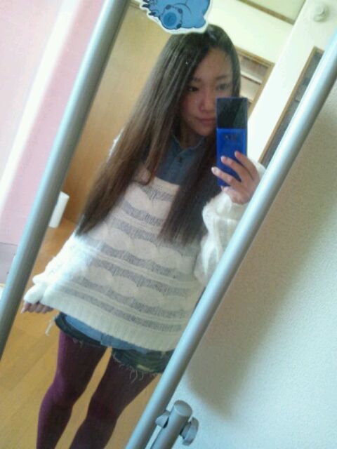 タイツに赤紫を合わせてちょっと個性的な感じでさらに私のツボ。