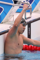 世界記録保持者の北島康介が、オリンピックレコードで大会2連覇を果たした。