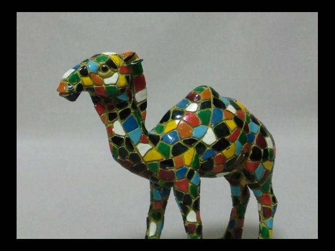 モザイク調のカラフルな、ラクダの置物 陶磁器だと思います。