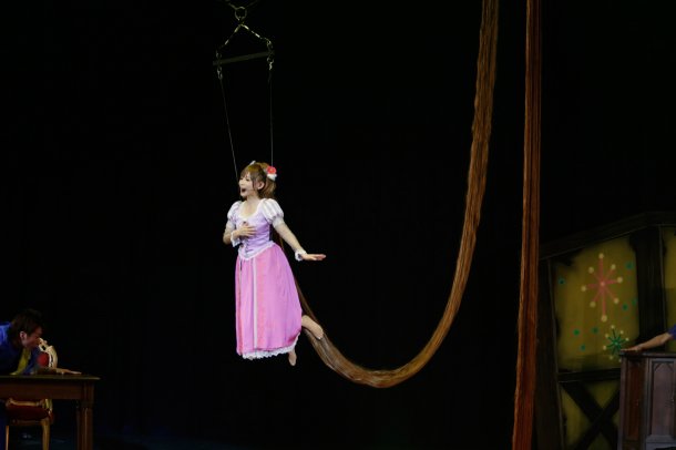 ライブのオープニングは、しょこたんが宙を舞いながらアカペラで「星に願いを」を歌うという驚きの演出からスタート。地上21メートルの高さを飛び回り観客を驚かせた。さらにはバレエやパントマイム、しょこたんが吹き替え声優として出演したディズニー作品「塔の上のラプンツェル」の世界観も取り入れられ、ステージはまさに「夢と魔法と貪欲の世界」となった。