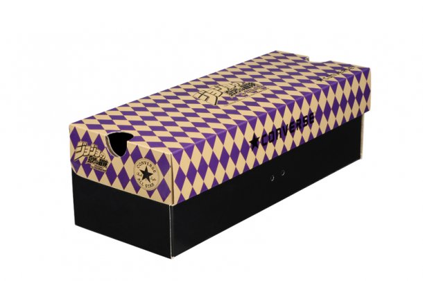 このコラボシューズでは、ALL STARのアイコンである「星マーク」をグラデーションプリントし、ジョースター家の血統を継いだ者の首の付け根にある「星型のアザ」に見立てた。インソールや裏地でも作品の世界観が表現されている。25.5cmから29.0cmのメンズサイズに加え、女性ファン向けに22.0cmから24.5cmのレディースサイズも用意された。