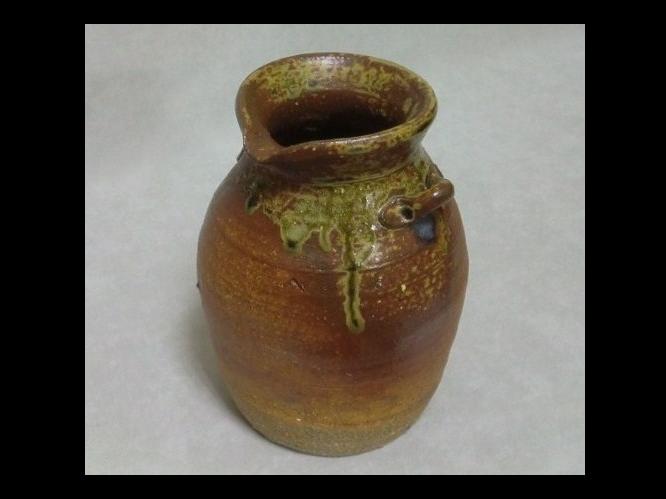 越前 自然釉 双耳雀口小壷 底に画像の陶印と在銘 検:お歯黒・雀口・鉄漿・茶道具