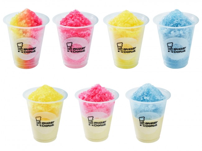 カラフルなかき氷『ミスドシェイブアイス』、かき氷とシェイクの2つの食感を楽しめる。『ミスドシェイブアイス』は、シャリシャリ食感のかき氷に、色鮮やかなシロップをかけたもの。