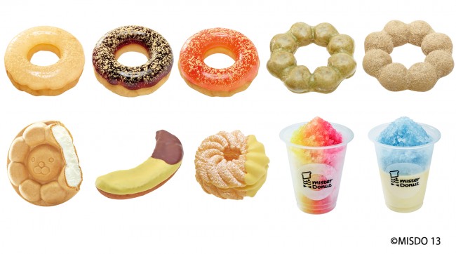 暑い夏にぴったりな、冷たさや涼しさを感じられる商品を限定販売する企画“クールミスド”。今年1月に発売10周年を迎えた“ポン・デ・リング”の記念商品として、『ぷるるんポン・デ・リング』3種と、『ポン・デ・リング生 抹茶』2種類、『ポン・デ・リング もなかアイス』を発売します。