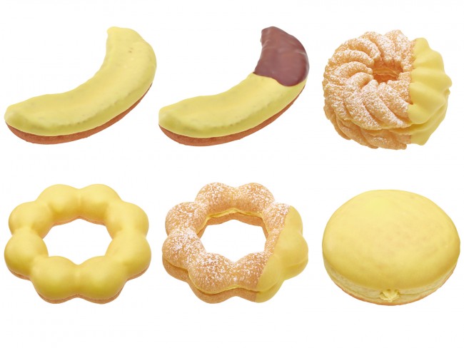 バナナ味にこだわった『バナナドーナツ』6種。『バナナドーナツ』は、それぞれミスタードーナツの人気商品をバナナ味にした新しいドーナツ。