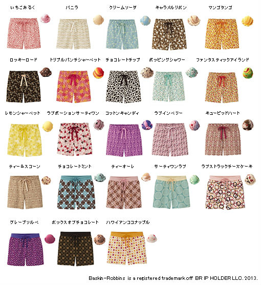 6月24日にユニクロから、サーティーワンアイスクリームのフレーバーをイメージしたショートパンツが発売!柄は31種類!バニラ、チョコレートチップなどの定番から、サーティワンラブやコットンキャンディといった期間限定フレーバーまで、人気のフレーバーがそろっています。