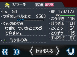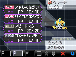 ※このジラーチが覚えている技「コメットパンチ」は、一度忘れてしまうと、覚え直すことができません。また、冒険の中で新しい技を覚えるために忘れた場合も、同様です。ご注意ください。