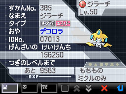 ※この「ジラーチ」が持っているきのみ「ミクルのみ」は通常のプレイでは手に入りません。冒険を進める上で使用してしまった場合はなくなってしまいますので、ご注意ください。通信プレイではなくなりません。