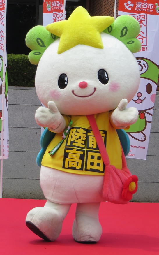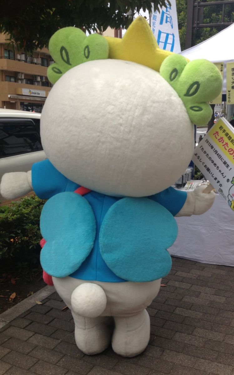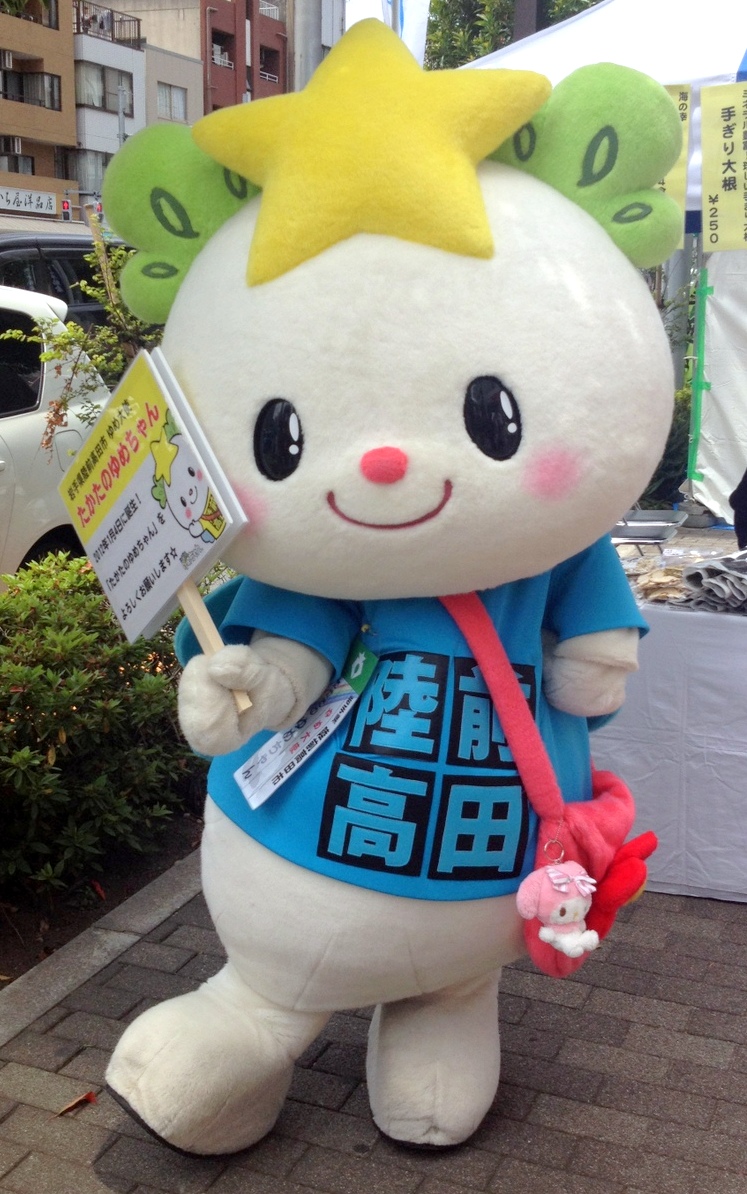 | 2011年夏に震災復興支援をアピールするため「夢☆キャラプロジェクト」が発足。 デザイン募集と市内の小中学生による2012年3月に投票、名前募集を経て2012年3月に誕生。 陸前高田市の市章をもとに、高田松原の松が耳になっている。 頭の星は希望の光で満ちていて、子どもたちを安全な場所へ導く。 背中の羽で自由に飛び回り、椿の花のバッグに詰まった夢・幸せをみんなにと届ける。 |