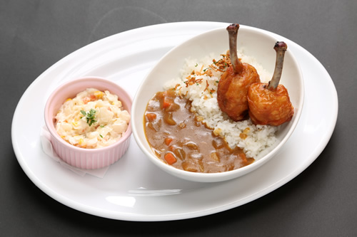 *骨付きジューシー唐揚げを添えた弱虫コビーの海軍カレーライス