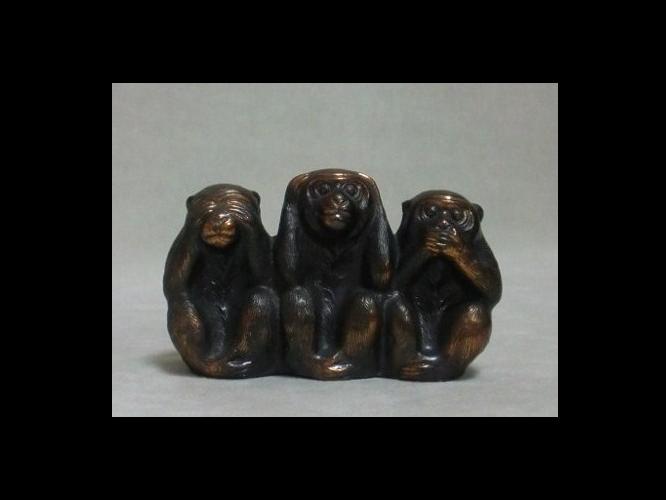 鋳銅製? 三猿の置物 ミザル、キカザル、イワザル 背中に英語