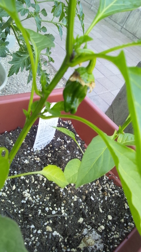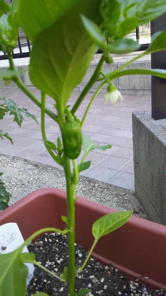 我が家のピーマンさん、花が咲き、実がなりはじめました♪