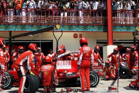 この事故、フジテレビの中継ではロリポップマン(ピットストップ時にドライバーの前で、ストップやゴーの合図を出す人)がゴーサインを出したからって言っていましたが、フェラーリには元々ロリポップマンはいません。