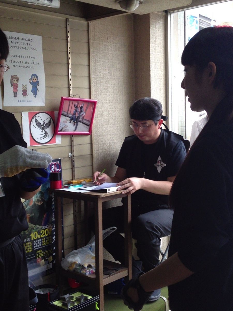 本番では、まず審判の方に一礼し、九字を切ってから手裏剣を投げるのがルール。(忘れると、減点されます。)