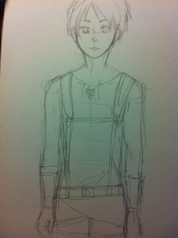 | <1>下書き とりあえず、兵士さんのベルトがどうなっているのかしっかり練習をしてみたかったので、棒立ち絵です。 左右対称にするのが、久々だと難しいですよね〜〜〜 | |