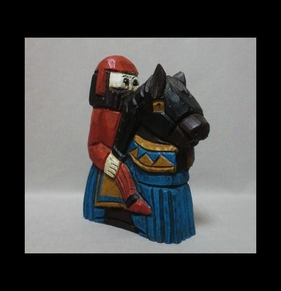 時代のありそうな、木彫り彩色 中世の馬に乗った騎士でしょうか?