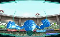 トレーニングの1つ、「スーパートレーニング」は、ポケモンの形をした巨大なバルーンロボを相手にして、互いのゴール目がけてシュートしあうトレーニング。