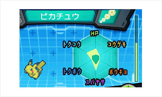 外側のグラフは、スパトレによって上がったきそポイントの合計を示している。1匹のポケモンが上げることのできるきそポイントには、上限があり、右側のメーターが、その上限を示している。 ポケモンには、それぞれ上がりやすい能力もあれば、逆に上がりにくい能力もあるのだ。
