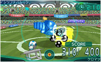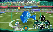 ニンテンドー3DSの機能を活かした奥行きのある映像で、迫力あるアクションを楽しむことができるぞ! スライドパッドとタッチパネルを使って、バルーンロボのシュートをうまく防ぎながら、相手のゴールにシュートを決めよう!