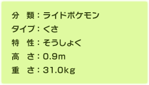 穏やかな性格のポケモンで、人と暮らすようになった最初のポケモンと言われている。