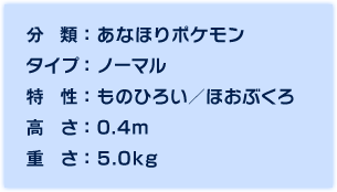 じめんタイプの技、「あなをほる」。1ターン目に地面に潜り、次のターンに攻撃する。地面に潜っている間は、ほとんどの攻撃を受けない。ダブルバトルで狙われそうなときに使えば、相手の攻撃を空振りさせることもできるぞ!