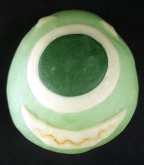 「サリー/しょうゆ肉まん」は、醤油ベースの味付けに、豚肉、たけのこ、しいたけ、さらに、キャベツを加えることでジューシーに仕立てた。生地はブルーで、巨体に恐ろしい吠え声がサリーの特徴というから"牙"を付けた。